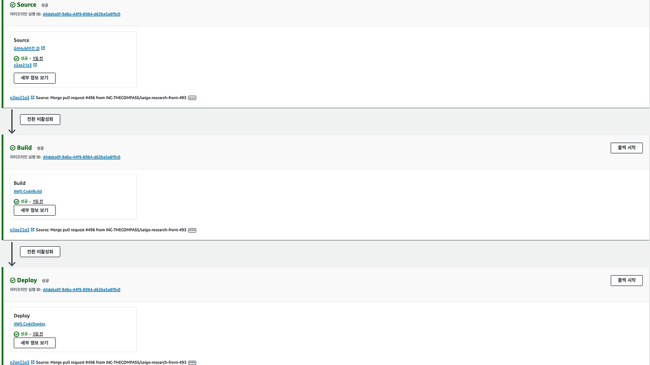 위 프로세스를 적용하기 위해 AWS CodePipeline을 활용하였다.