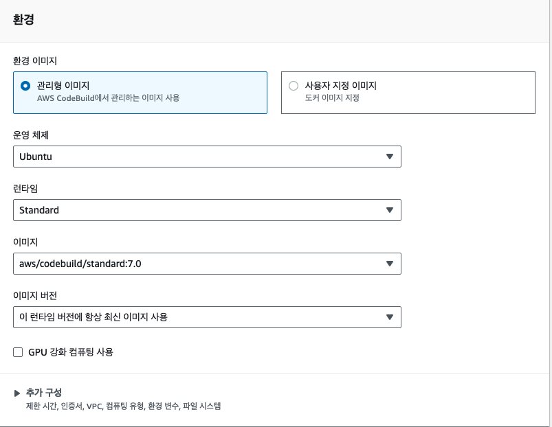 CodeBuild 빌드 프로젝트 생성
