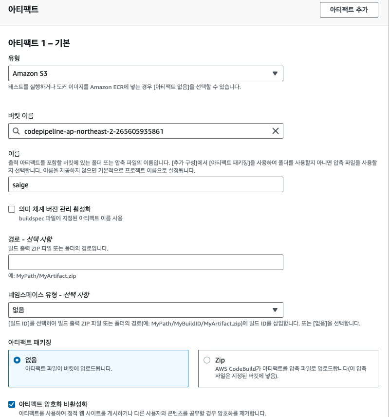 artifacts files에 정의한 파일들을 빌드 결과물로 넘겨주게 된다. 해당 프로젝트는 Nuxt.js를 통해 개발을 진행했는데, Nuxt는 프로덕션용 애플리케이션을 구축할 때 .output/ 디렉토리를 생성하므로 해당 파일의 경로를 지정했다.