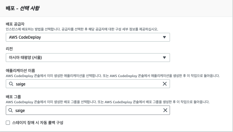 AWS에서 제공해주는 개발자 도구를 옵션들을 통해 CodePipeline을 수월하게 구축할 수 있다.