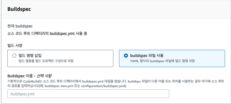 - CodeBuild 서비스는 사용자가 작성한 buildspec.yml 파일을 참조하여 작업을 수행