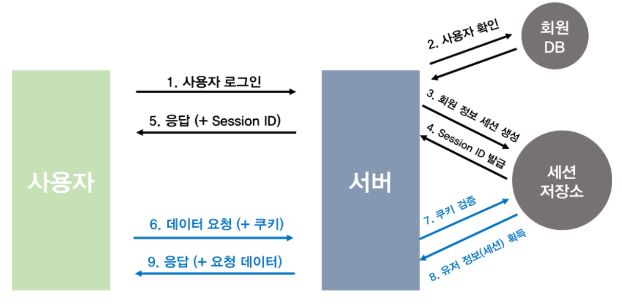 8~9. 만약 session ID가 유효하다면, 인증이 완료된 것으로 간주하고 요청을 처리합니다. 반면 session ID가 유효하지 않거나 세션이 만료되었다면, 인증 실패로 처리하여 에러를 반환합니다.